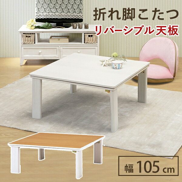 送料無料 こたつ 折りたたみ 折れ脚 折り畳み 木目調 105×75cm 長方形 ローテーブル カジュアル 炬燵 オールシーズン センターテーブル コンパクト リバーシブル天板 ホワイト×ナチュラル おしゃれ かわいい 1人暮らし KOT-7350-105